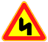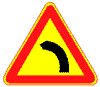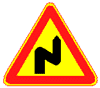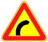 Merkillä varoitetaan tien yleiseen linjaukseen nähden poikkeuksellisesta mutkasta.
