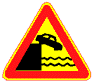 Merkillä varoitetaan tien yleiseen kuntoon nähden yllättävästä ja poikkeuksellisen epätasaisesta tienkohdasta.