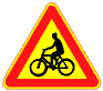 Merkillä voidaan varoittaa risteävästä pyörätiestä tai tienkohdasta, jossa polkupyöräilijät tai mopoilijat pyörätien päättymisen johdosta siirtyvät ajoradalle.