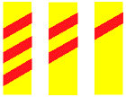 Ajoradan ulko- tai yläpuolella olevissa kiinteissä esteissä ja varoituslaitteissa käytettävät värit ovat musta ja keltainen. (29.4.1994/328)