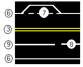 Töyssy, korotettu suojatie tai muu vastaava rakenne merkitään valkoisella ruutumerkinnällä.