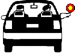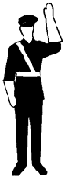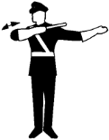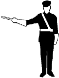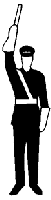 (käsivarsi kohotettuna kämmen lähestyvää ajoneuvoa kohti)
