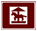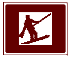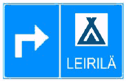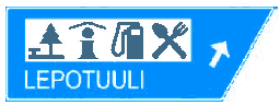 Ruskea pohjaväri ja valkoinen teksti opastusmerkeissä osoittavat vapaa-ajan matkailuun tarkoitettua palvelua.